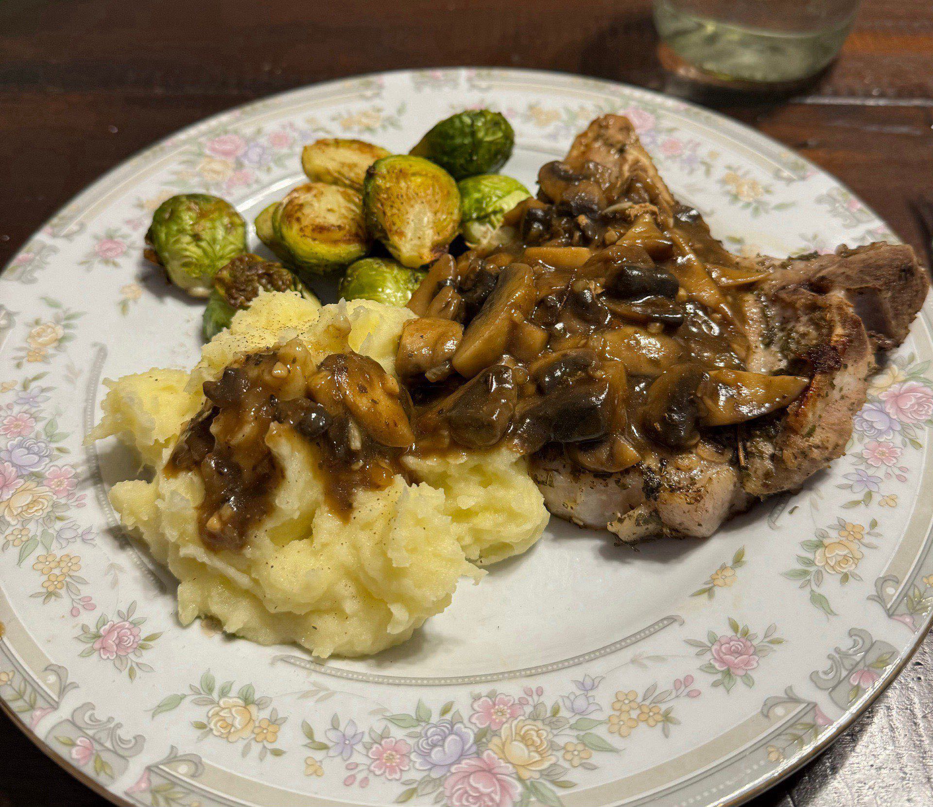 Serve chops and top with gravy. I love them with mashed potatoes and any green veggie.