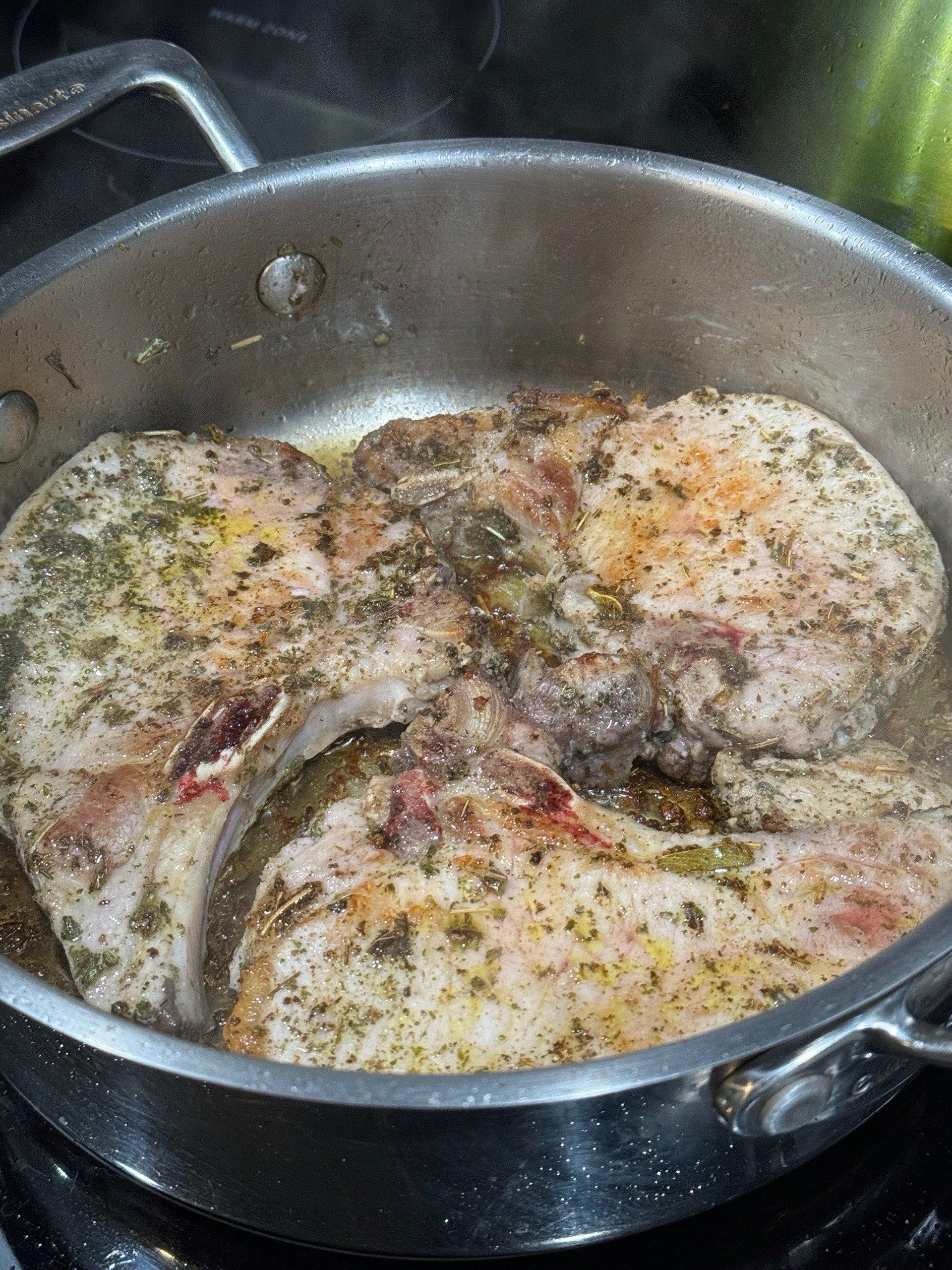 Place chops in bowl. Drizzle with olive oil and toss in herbs until fairly evenly coated. Cover and refrigerate for at least 4 hours.
