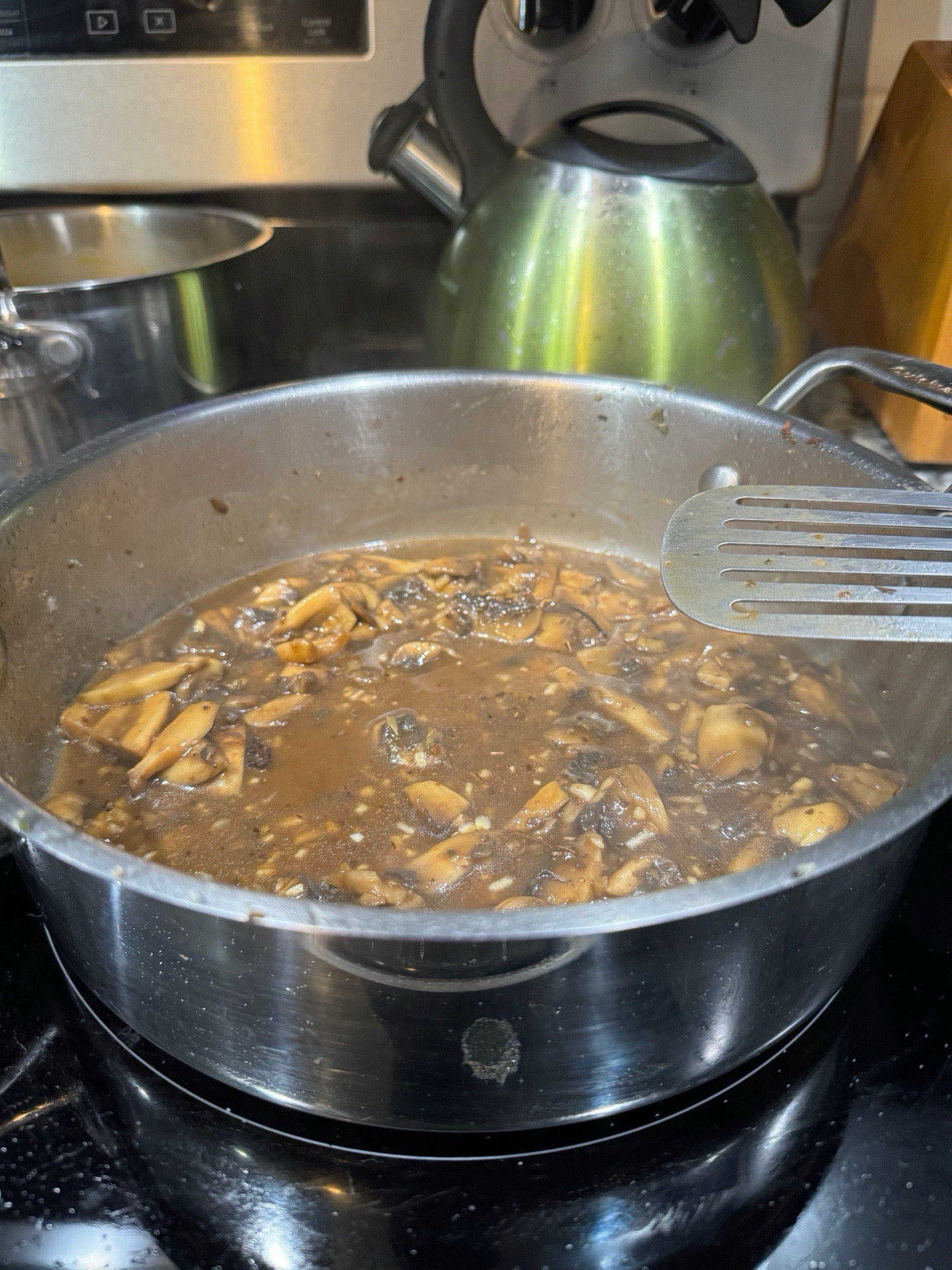 4 large white mushrooms or 6 small-medium, washed and sliced